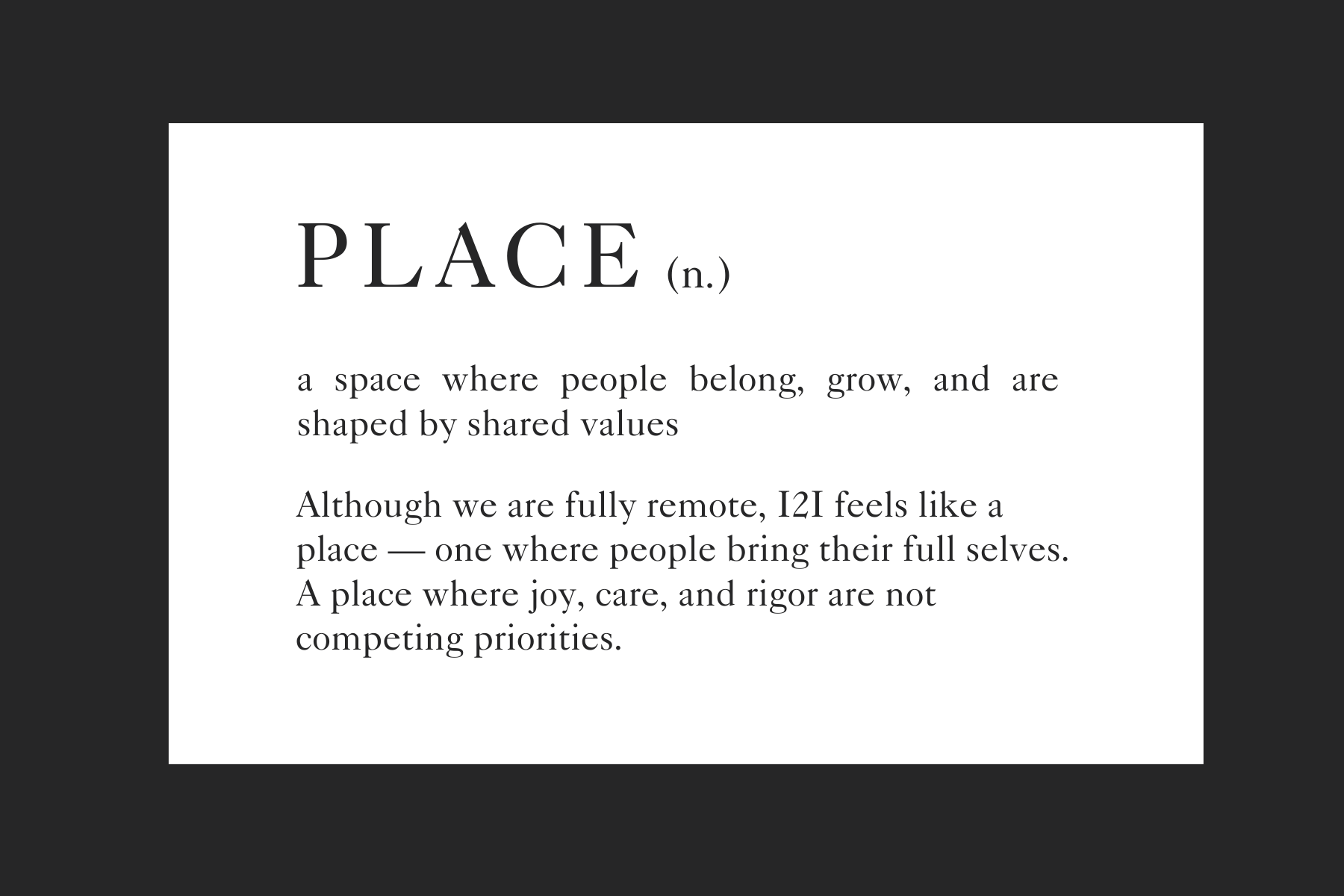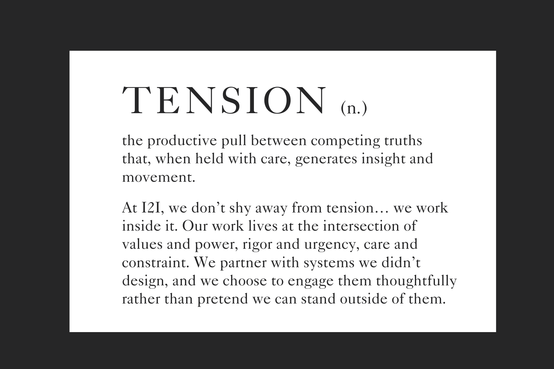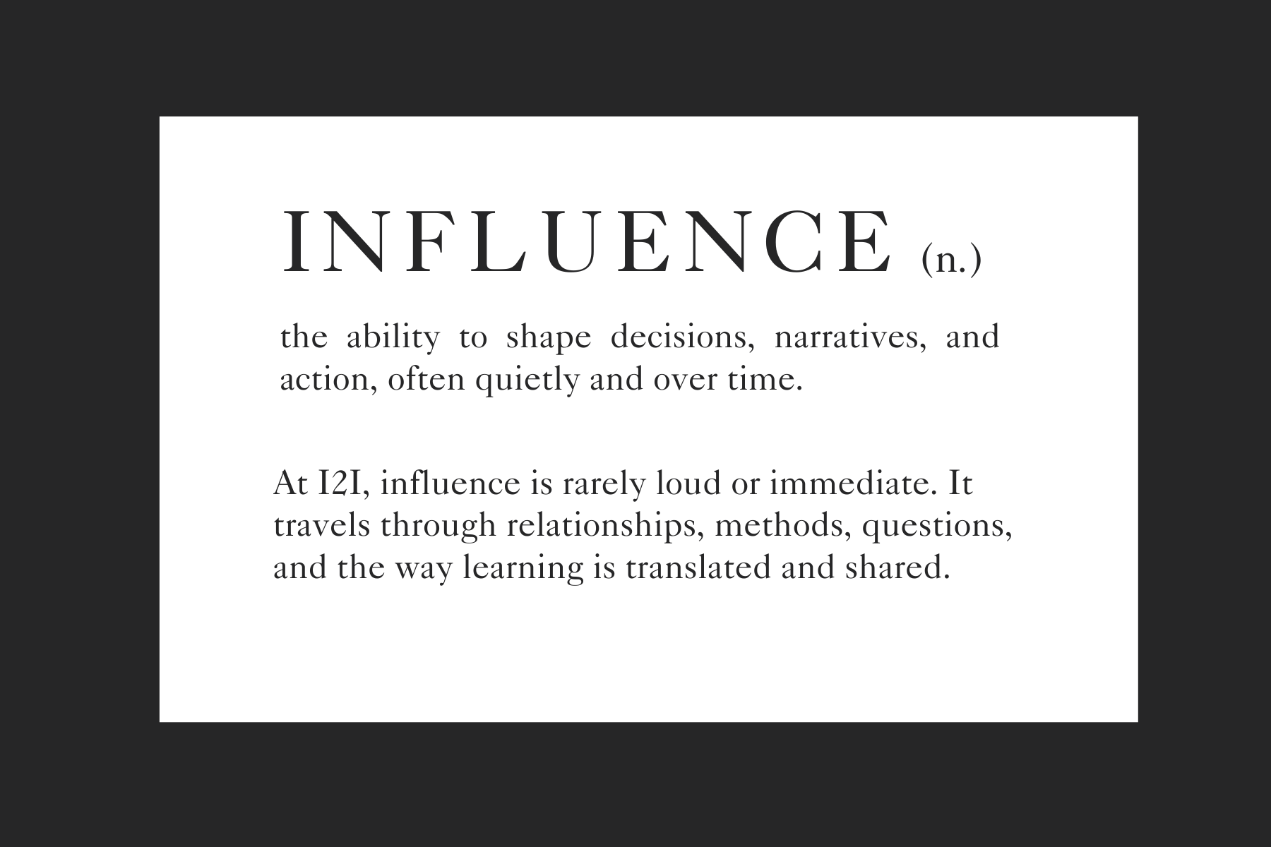 So instead of offering a traditional year-in-review, we want to share a set of working definitions, each grounded in a moment from 2025 that helped define us, and taught us something about who I2I is becoming.